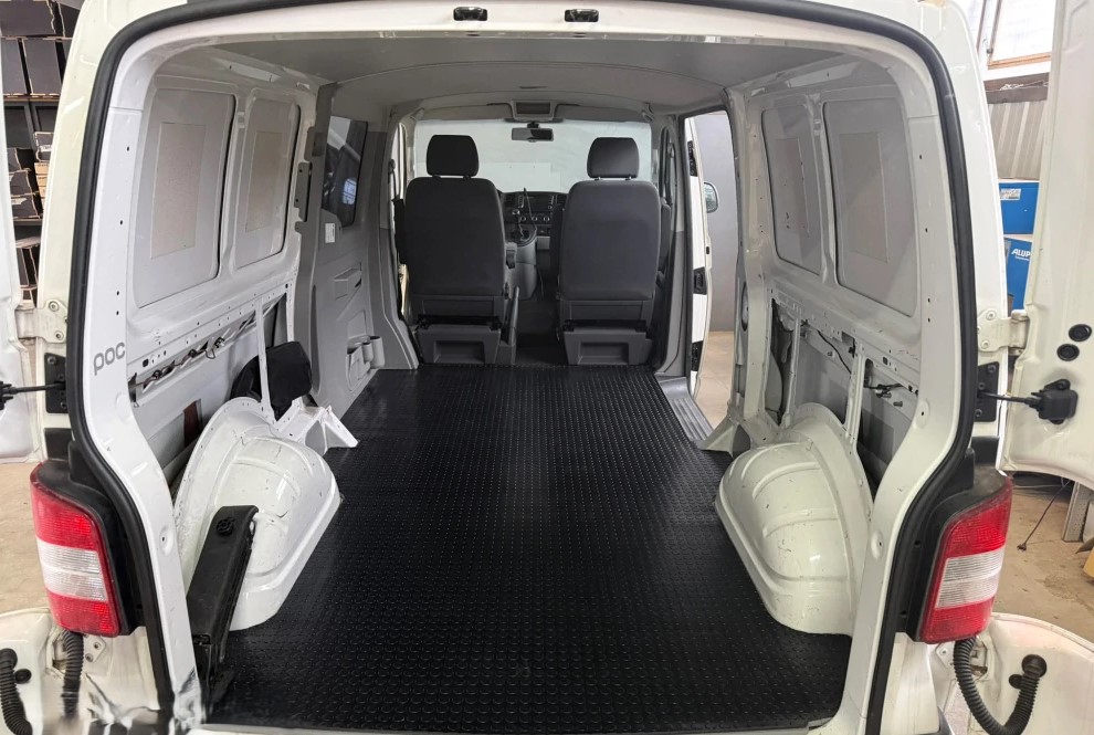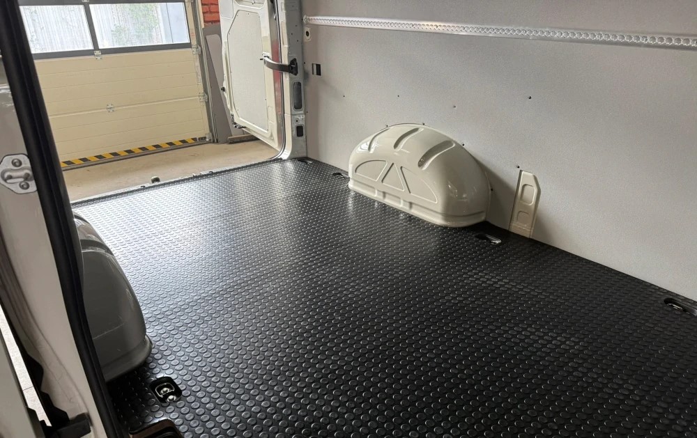 Perfektný doplnok pre preglejkovú podlahu nákladového priestoru. Na nami presne vyrobenú podlahu môžete položiť kryciu vrstvu z kvalitnej podlahovej gumy s hrúbkou 4 mm s protišmykovým peniažkovým dezénom. Vďaka presnému formátu je krytina jednodielna - pokrýva celú šírku aj dĺžku podlahy bez nutnosti spojov či napojovania.