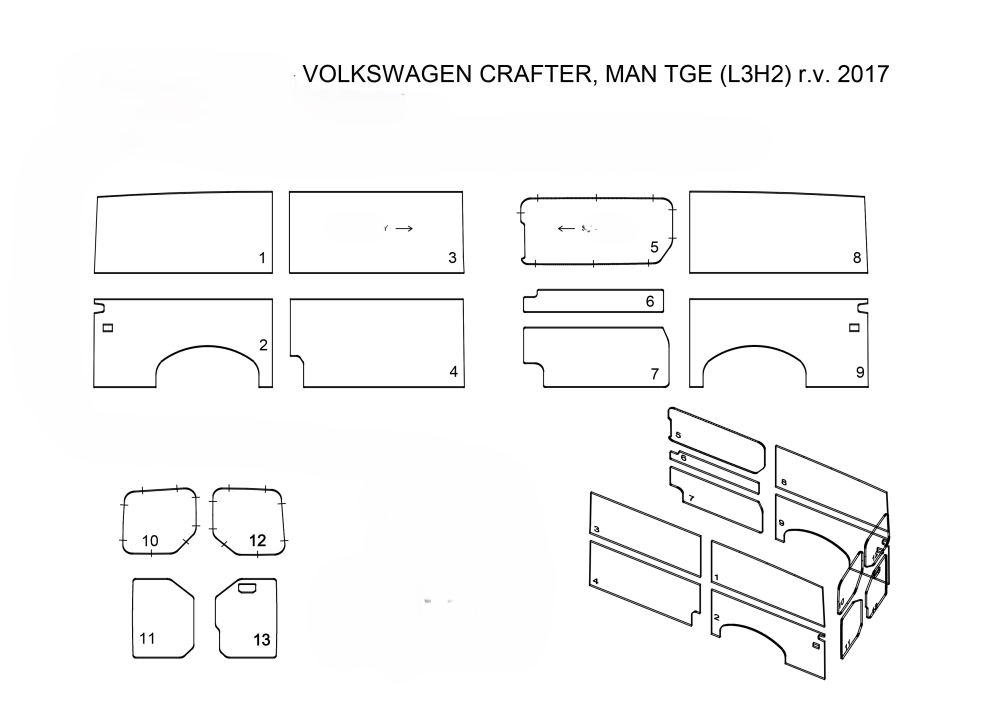 Vnútorné obloženia nákladového priestoru L3H2 VW CRAFTER - / MAN TGE 2017--